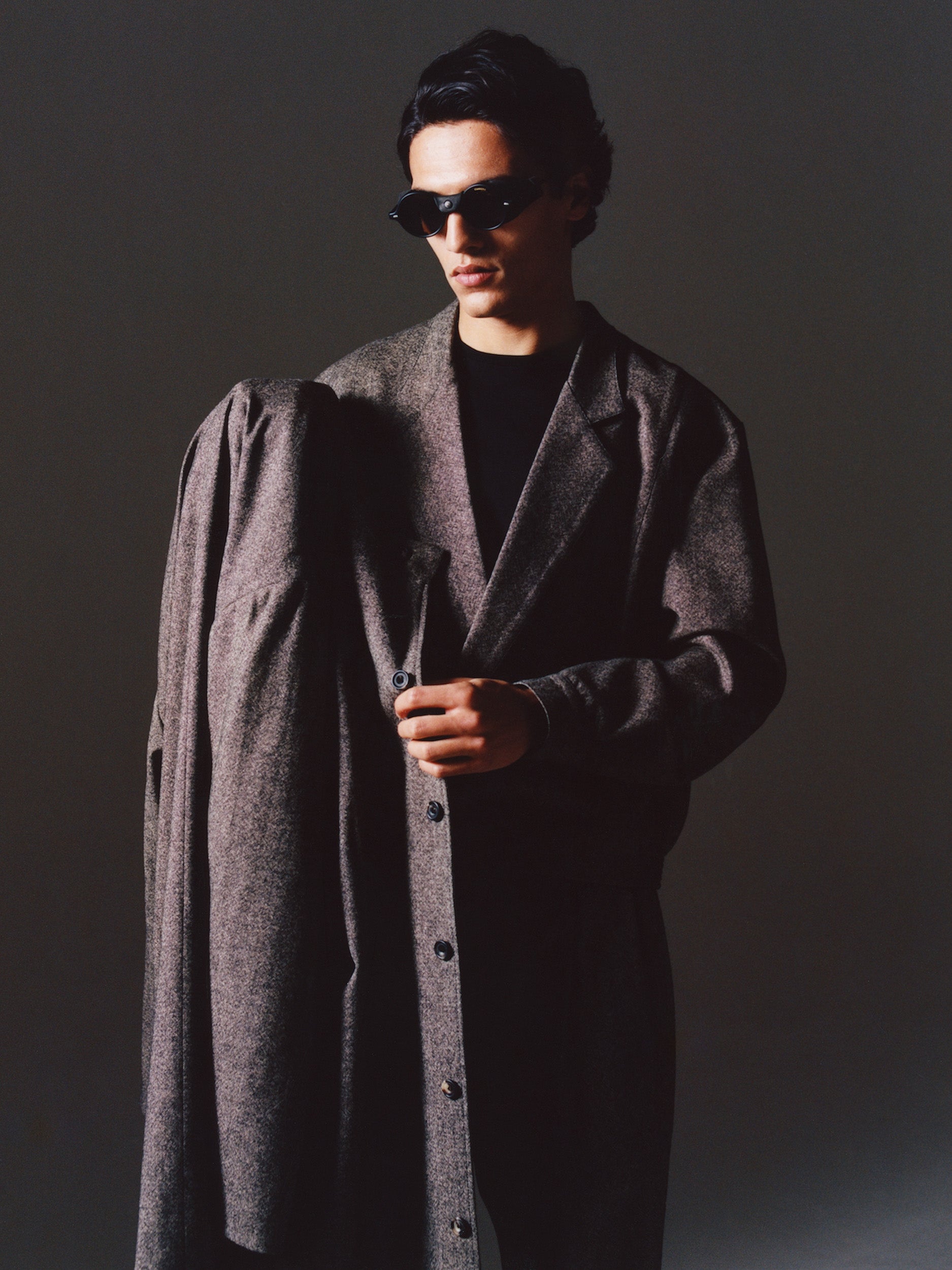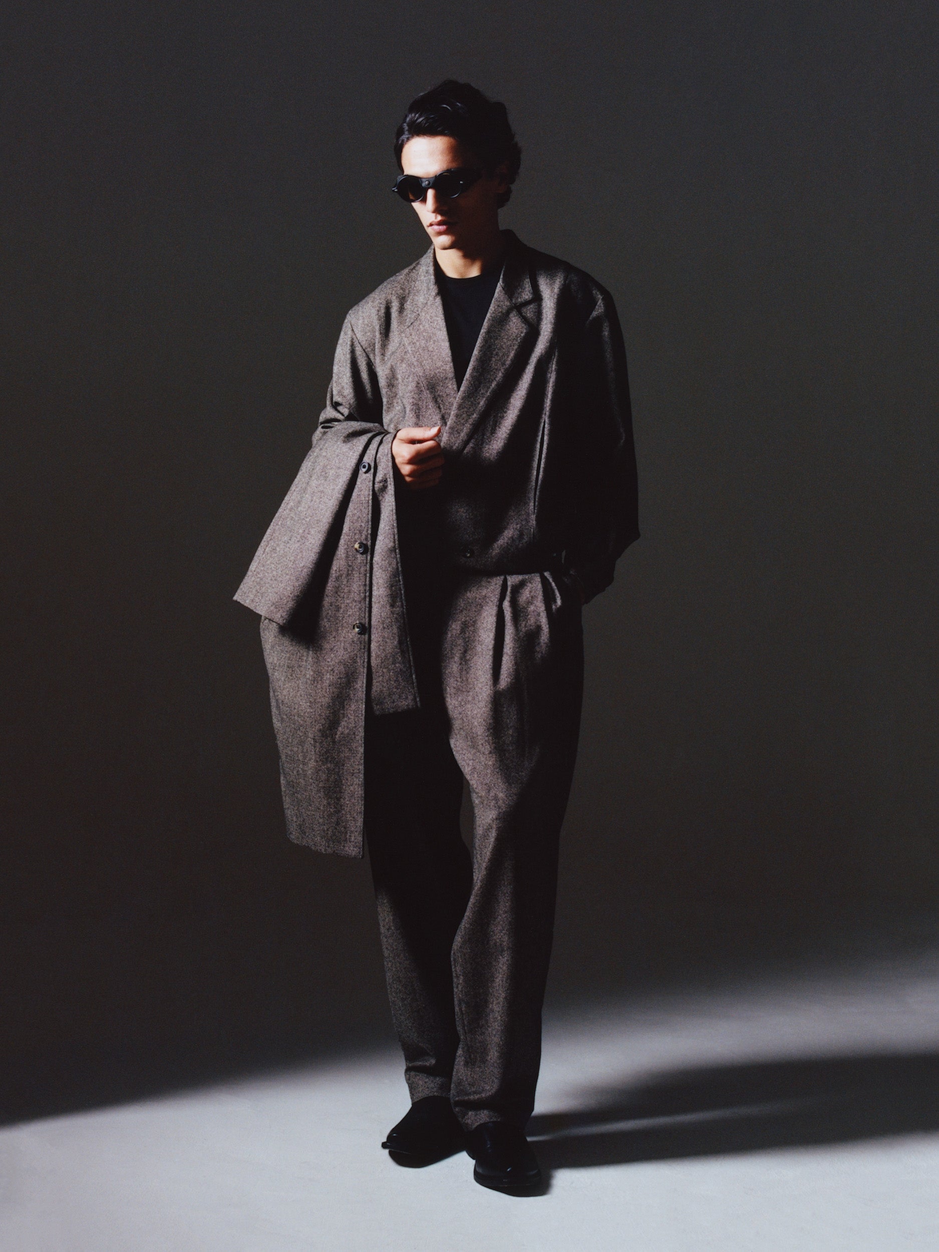 Some men inherit their place; others must make one. The Rico belongs to the latter. Its cropped, aphoristic form rejects the static lines of tradition while an inverted back pleat accommodates a life in motion. Also available in black with a grey chalk stripe.
