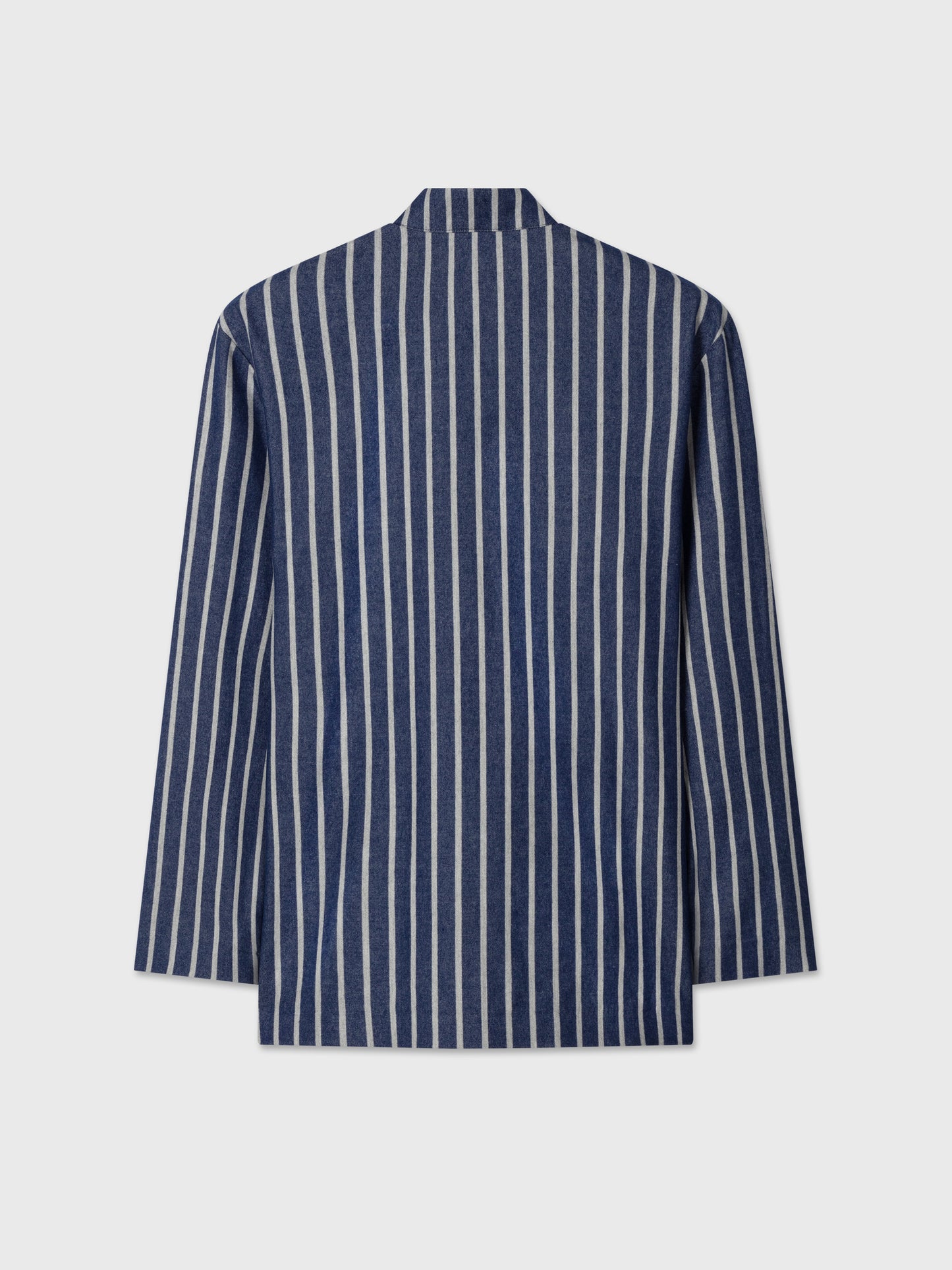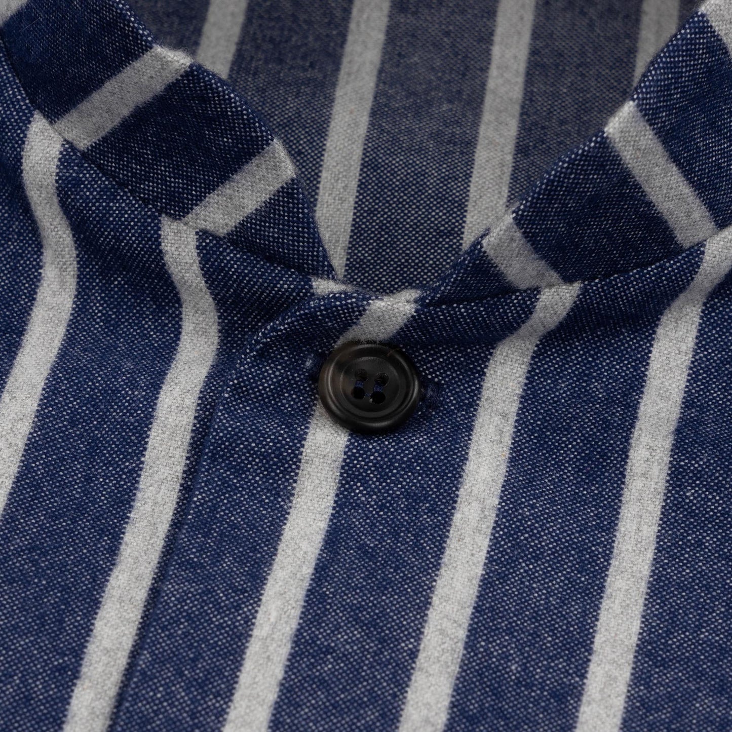 - Japanese Navy Brushed Cotton with Pale Grey Bengal Stripes